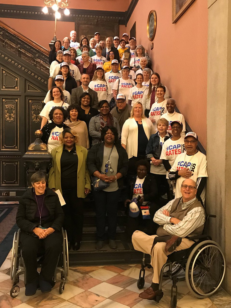 A #CapRateSC rally in early 2020 attracted more than 150 people in connection with a hearing to rein in predatory lending on consumer loans.