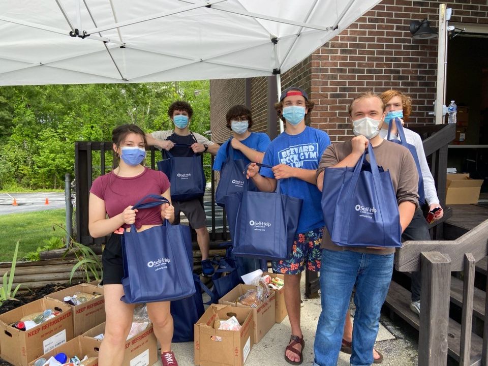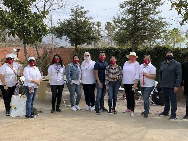 Top: Volunteers in Brevard, NC help distribute food to those in need. Lower: Volunteers in California's Kern County, including staff from Self-Help's Lamont Branch, provide assistance at a vaccine site.