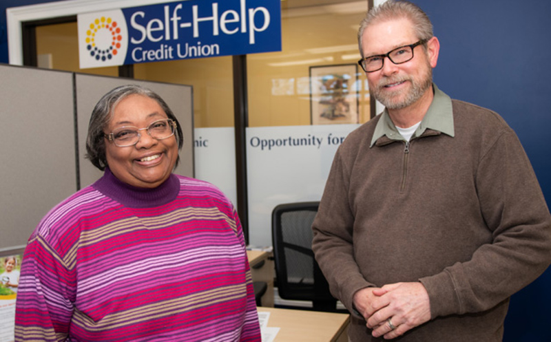 Ms. Iren Burdine with Self-Help loan officer David Finely. Photo: Amy Randall Photography.